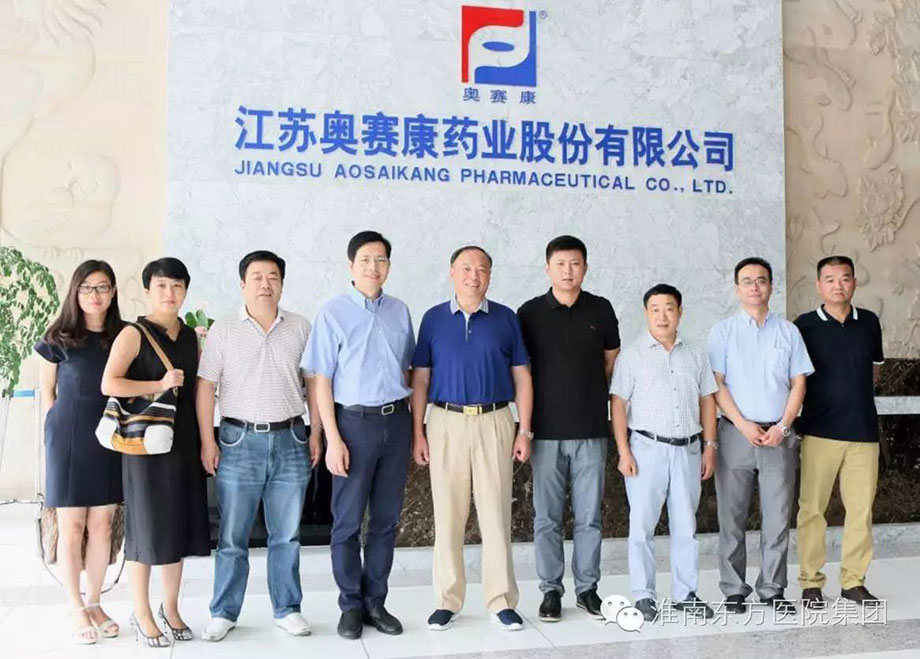 參觀江蘇奧賽康藥業(yè)參觀四家公司期間,揚(yáng)子江藥業(yè)的梁總、濟(jì)川藥業(yè)的徐總、上海聯(lián)影的唐總、江蘇奧賽康的徐總均對(duì)江董 事長(zhǎng)一行的到來給予熱烈歡迎,并陪同參觀了廠區(qū)和展覽大廳。交談中,江鴻方董事長(zhǎng)就東方醫(yī)院集團(tuán)及康寶藥業(yè)的發(fā)展?fàn)顩r進(jìn)行了詳細(xì)的介紹,并對(duì)下一步深入合作提出了建設(shè)性意見。同時(shí),江鴻方董事長(zhǎng)會(huì)談時(shí)反復(fù)強(qiáng)調(diào),康寶藥業(yè)是東方醫(yī)院集團(tuán)唯一藥品供應(yīng)單位。