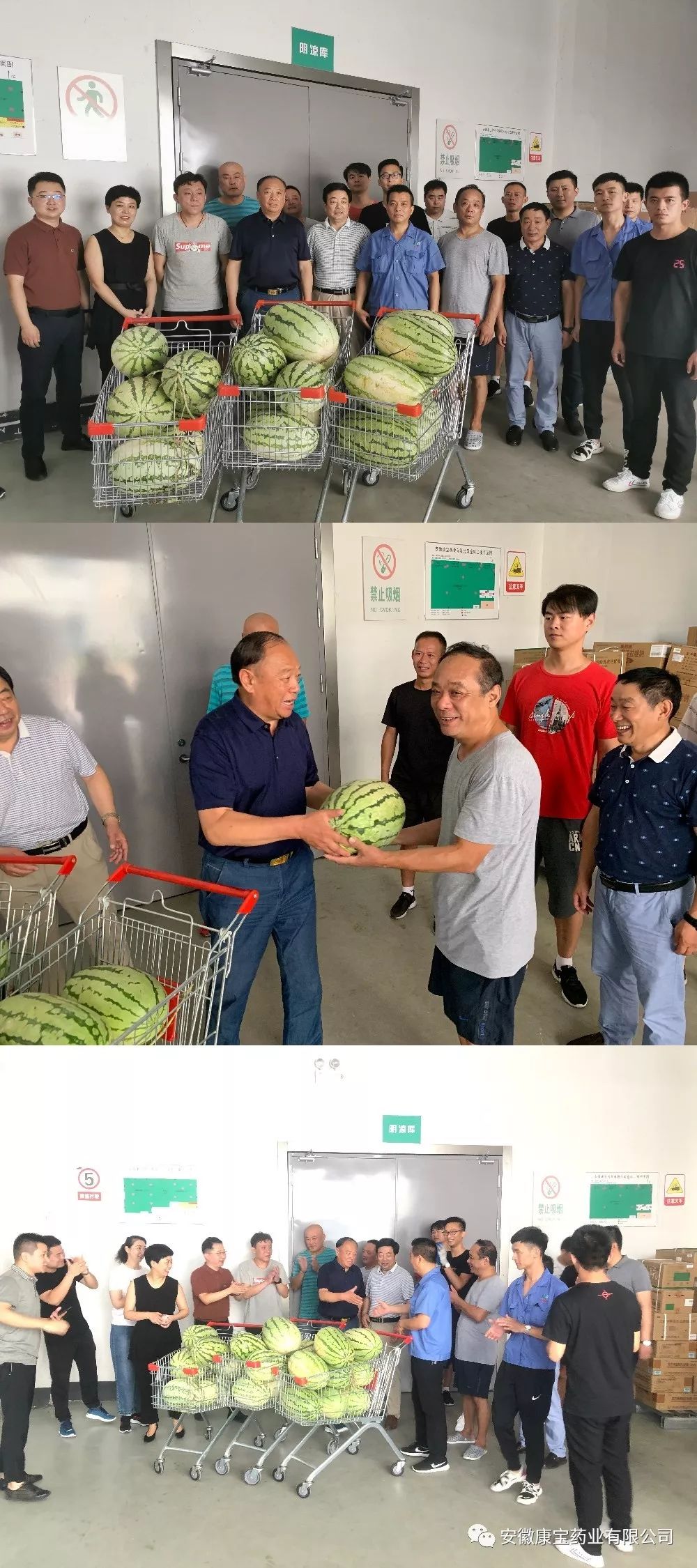 醫(yī)院集團(tuán)董事長江鴻方時時刻刻把員工的利益放在第一位,時時刻刻為員工著想??釤嵯娜绽?,江董事長冒著高溫,來到康寶倉儲一線,與大家親切握手,并把慰問品、慰問金送到了每一位員工手中。中秋國慶前,江董事長又送來了慰問和祝福,香噴噴的東北米、金燦燦的色拉油又來到了每一位員工的手中。