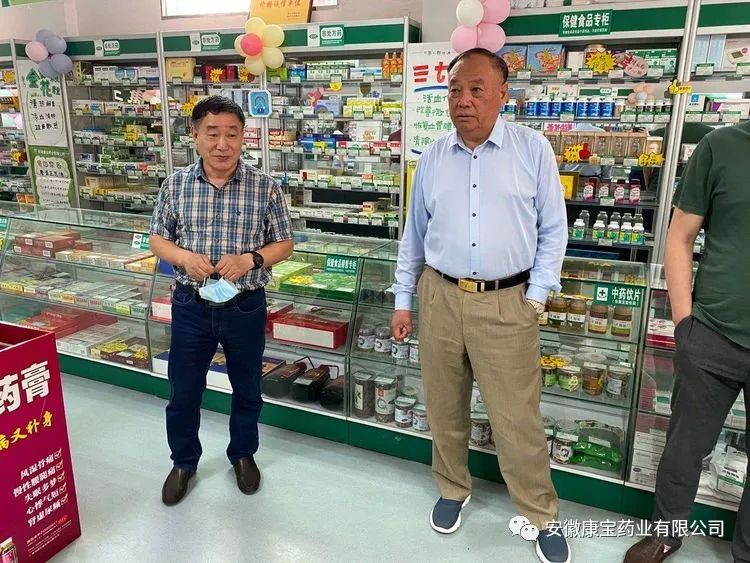 醫(yī)院集團(tuán)董事長江鴻方,康寶藥業(yè)董事長朱興林及公司領(lǐng)導(dǎo)一行也來到泉山店參加店慶活動,并為藥店的發(fā)展規(guī)劃及疫情防控做了具體部署。